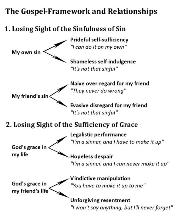 When I lose sight of the sufficiency of God’s grace in someone else’s life (whether a friend or colleague or spouse or parent or child or leader), where do I end up? How about vindictive manipulation: “You have to make it up to me. You hurt mr; you let me down, and now you have to make it up. You have to work your way back into my good graces. But I’m always going to hold the bar just an inch or two higher than you can reach, so that I can keep you in debt to me and make you feel the pain you’ve caused me to feel. Don’t worry about performing for God, I’m the one you have to worry about. And I will withhold forgiveness and peace until I’m convinced on my terms that you deserve it. And just in case you try to do the same thing to others, I plan to warn them and tell them what you did. To protect them. So they can pray for you. And (if we’re honest) so that you suffer.” Vindictive manipulation.